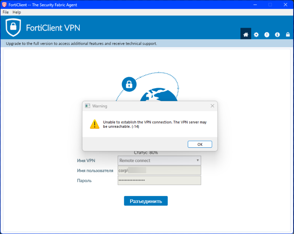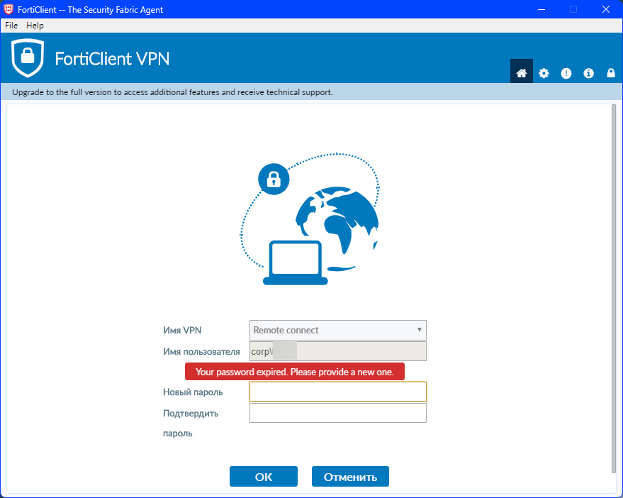 7. Если вы успешно подключились в FortiClient, то ваш пароль был изменён.