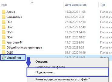 a. Откройте сетевой диск Принтеры ГК b. Откройте папку Принтеры ГК