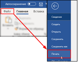 1. Откройте необходимый документ, нажмите Файл, далее - Печать.
